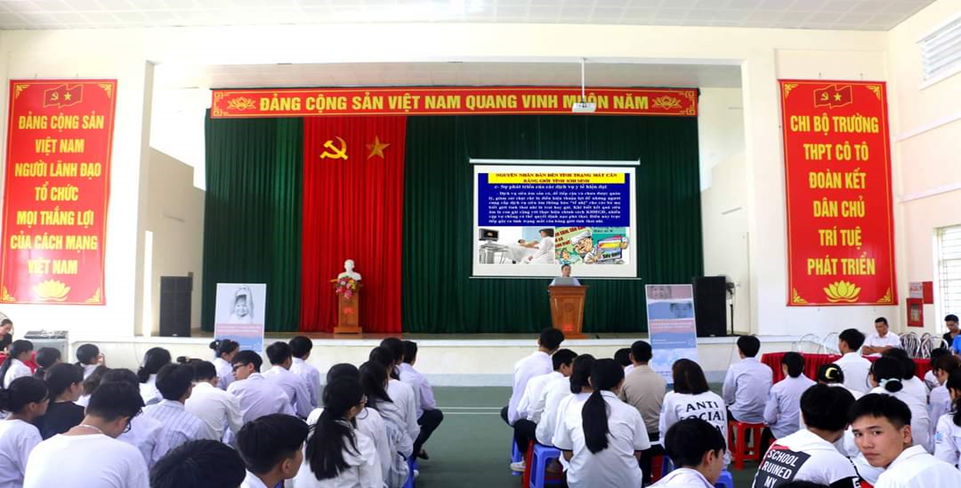 Tại buổi ngoại khóa, các thầy cô và học sinh nhà trường đã được cán bộ phòng Dân số kế hoạch hóa gia đình, Trung tâm y tế huyện Cô Tô tuyên truyền về tác hại, hệ lụy của tảo hôn, kết hôn cận huyết thống; nguyên nhân, hậu quả, thực trạng về mất cân bằng giới tính khi sinh, một số nội dung về kế hoạch hóa gia đình, sử dụng các biện pháp tránh thai hiện đại, chăm sóc sức khỏe sinh sản vị thành niên….